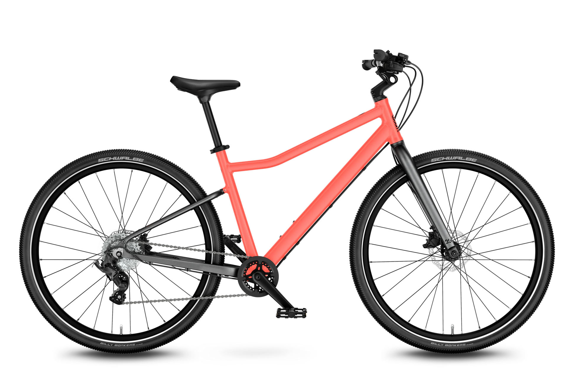 - kindgerechte, sportliche Geometrie sowie abgeflachter Knick und kantige Rahmenrohre für einen markanten Look und ein komfortables Fahrerlebnis